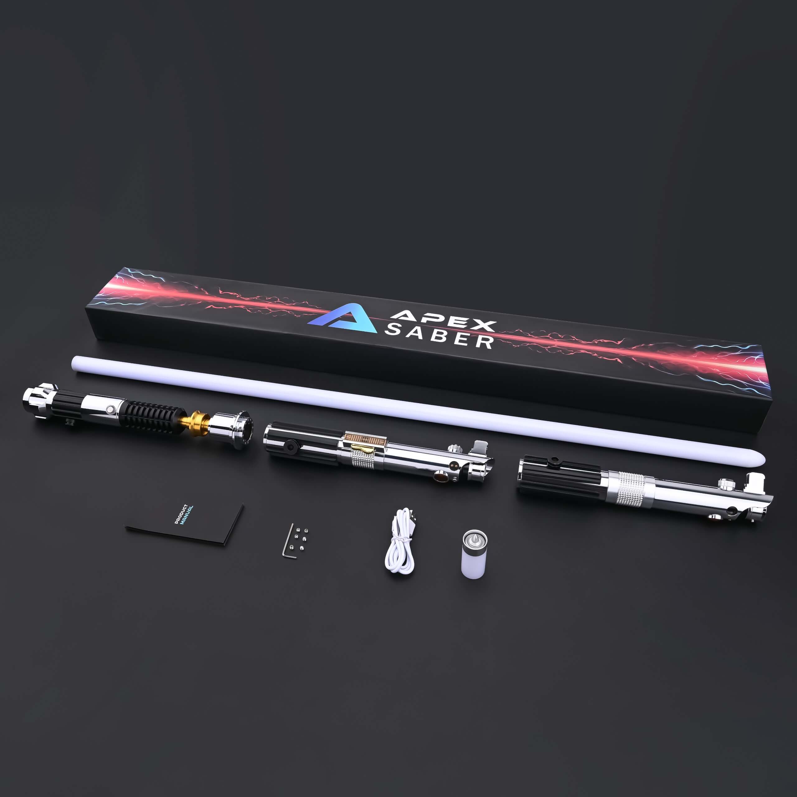 All movie replicas arrive with two Combat Edition lightsabers of your choice, while all custom sabers arrive with two dueling sabers.