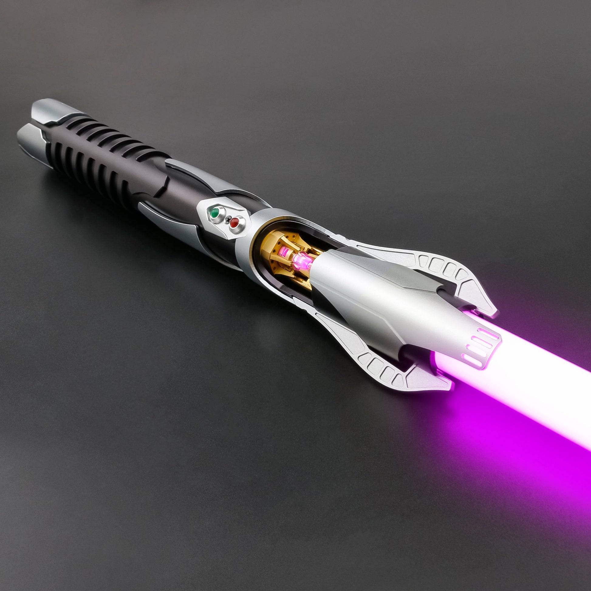 Flash-On-Clash As blades collide, the saber flashes brightly for a moment, creating that signature movie-like spark when lightsabers clash in battle.